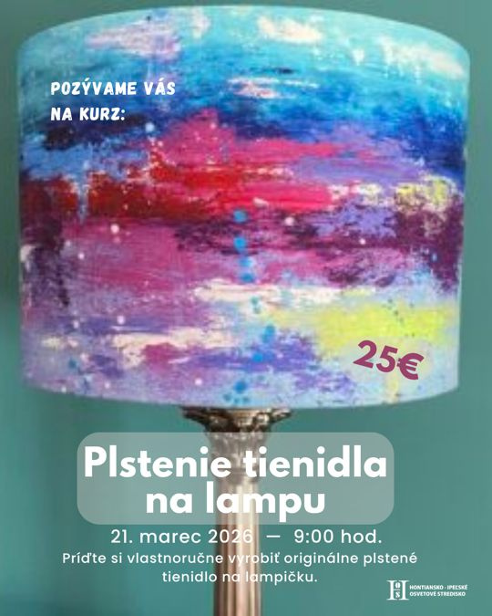 Plstenie tienidla na lampu. 21. marec 2026. Cena 25€. Hontiansko-Ipeľské osvetové stredisko